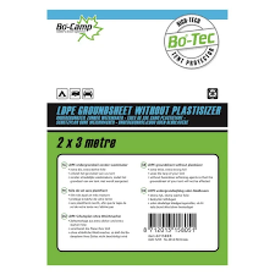 Extra sterk en dikker ondergrondzeil. Zorgt dat het grondzeil van de tent niet vies wordt en dat optrekkend vocht wordt tegengehouden. Gemaakt van 0,03 millimeter ‘low density polyethyleen’ (LDPE). Bevat geen weekmakers zodat de coating van het grondzeil niet wordt aangetast.