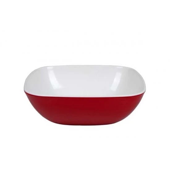 Een vierkante kom van 100% melamine. Deze hoogwaardige melamine kom is vrijwel onbreekbaar en zeer licht van gewicht. Daarnaast is de kom kraswerend en vaatwasmachinebestendig.