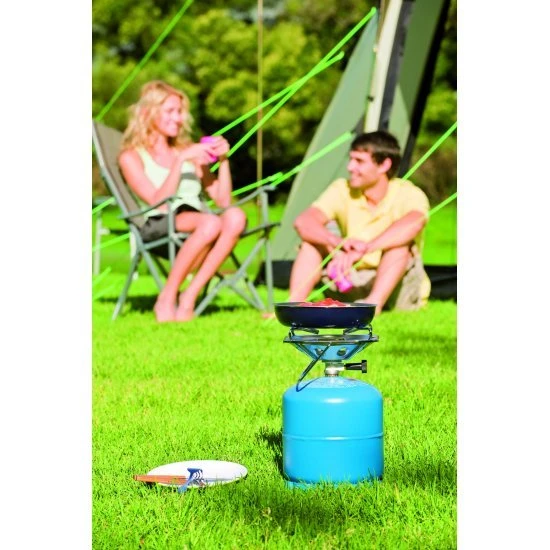 Een zeer robuuste en extra krachtige kookbrander. Deze 1-pits brander beschikt over een geïntegreerd windscherm, zo blijft de vlam goed branden en wordt de warmte optimaal overgebracht. De brander werkt op hervulbare cilinders R904 en R907 en heeft een regelbaar vermogen van 3000 Watt. Hiermee bedraagt de kooktijd 4 minuten voor 1 liter water.
