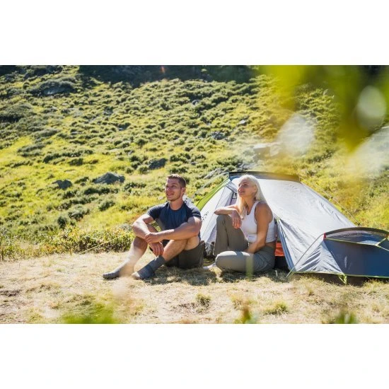Lichtgewicht, ingeklemde tunneltent, met aluminium stokken en een compacte pakmaat, perfect voor backpacken of weekendjes weg.