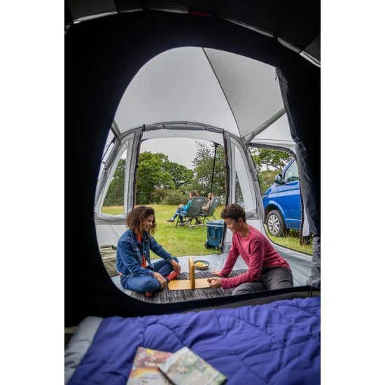 Gaat u kamperen met twee personen? Dan is deze 2 persoons tunneltent Journeymaster Pro een uitstekende optie. Deze Coleman tent heeft een ruim leefgedeelte en een slaapcabine voor 2 personen. Dankzij de BlackOut bedroom technologie wordt 99% van het daglicht in de slaapcabine geblokkeerd voor een betere nachtrust. Niemand vindt het leuk om eindeloos lang bezig te zijn met het opzetten van een tent. Daarom is deze tent zo ontworpen dat u hem opzet in slechts enkele minuten. De glasvezel tentstokken zijn voorzien van handige kleurcodes. Deze 2 persoons tunneltent biedt een ruim leefgedeelte en een royale slaapcabine. De grote ramen in het leefgedeelte zorgen voor voldoende daglicht en een ruimtelijk gevoel. Voor een betere nachtrust is de slaapcabine in deze Coleman tent uitgerust met de gepatenteerde BlackOut bedroom technologie. Deze techniek blokkeert 99% van het daglicht. Hierdoor slaapt u dieper en blijft de tent aangenaam van temperatuur. De tent heeft een drempelloze entree. Ideaal voor kinderwagens, buggy’s of een rolstoel. Niets is zo belangrijk in een tent als goede ventilatie. Daarom zijn al onze tenten uitgerust met voldoende ventilatie roosters om condensatie te voorkomen en te zorgen voor een continue doorstroom van frisse lucht.
