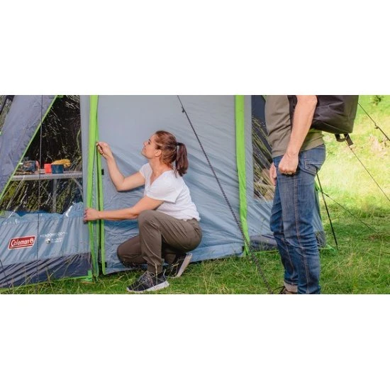 Zware regen is geen partij voor de polyester buitentent met een waterkolom van 4000 mm en volledig getapete naden, dit in combinatie met het stevige, geïntegreerde polyethyleen grondzeil zorgt voor een droog en insectenvrij interieur. De buitentent is ook behandeld met Coleman’s UVGuard die SPF 50-bescherming biedt tegen de zonnestralen.