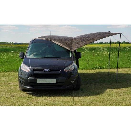 Perfecte bescherming tegen regen en zon. Diverse functies, zoals bescherming van aas en verlengen bivvies en kooktenten. Khaki laminaat reduceert penetratie licht. Volledig waterdicht. Lichtgewicht en compact in transport. Versterkte hoeken met zeilringen voor stormkoorden. Geleverd met twee inklapbare stormpoles. Inclusief draagtas met haringen en stormkoorden. 100% Polyester. 430x345x200cm.