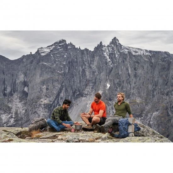 Zeer effectieve kookpot voor de campingkachel. Het idee achter onze PrimeTech kookpotten is efficiëntie, de campingkachel moet van elke gram brandstof kunnen profiteren. Ze zijn geschikt voor wandelaars die een lichtere rugzak willen, maar even willen wachten tot het water kookt en meer van de natuur willen genieten. Dankzij een geïntegreerde warmtewisselaar op de bodem van de pan stijgt het rendement met 50% in vergelijking met traditionele pannen. Hierdoor kookt water sneller en gaat de brandstof langer mee. Dit betekent weer dat u minder brandstof hoeft mee te nemen, wat goed is voor zowel uw portemonnee, uw rug als het milieu. De PrimeTech pot is gemaakt van hard geanodiseerd aluminium, dat een goede warmteverdeling heeft en niet roest. Het heeft ook een keramische antiaanbaklaag aan de binnenkant, wat het koken en schoonmaken vergemakkelijkt. De tweede pot is gemaakt van hard geanodiseerd aluminium, met een traditioneel ontwerp zonder warmtewisselaar. Beide potten zijn 2,3 liter, goed voor 2-5 personen. Een transparant deksel in Tritan met een geïntegreerde zeef en hittebestendige siliconen handgrepen die het gemakkelijker maken om bepaalde taken uit te voeren, zoals het gieten van pastawater. De slimme grijptang is zo stabiel als een vaste handgreep en flexibel als een conventionele grijper en kan in de pan worden vergrendeld voor eenvoudig en veilig gebruik.