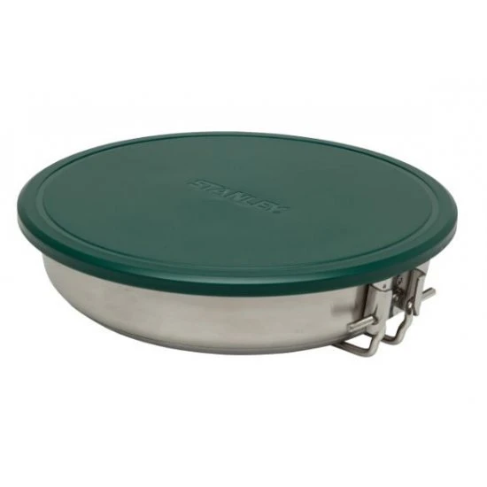 De Stanley Adventure All In One Fry Pan Set bestaat uit: 1 Driehoekige koekenpan met een diameter van 18,4 cm, 1 snijplank, 1 spatel met verlengde handgreep, 2 platen met een diameter van 15,2 cm, 2 sporks, 2 hittebestendige onderzetters, 1 hoes.